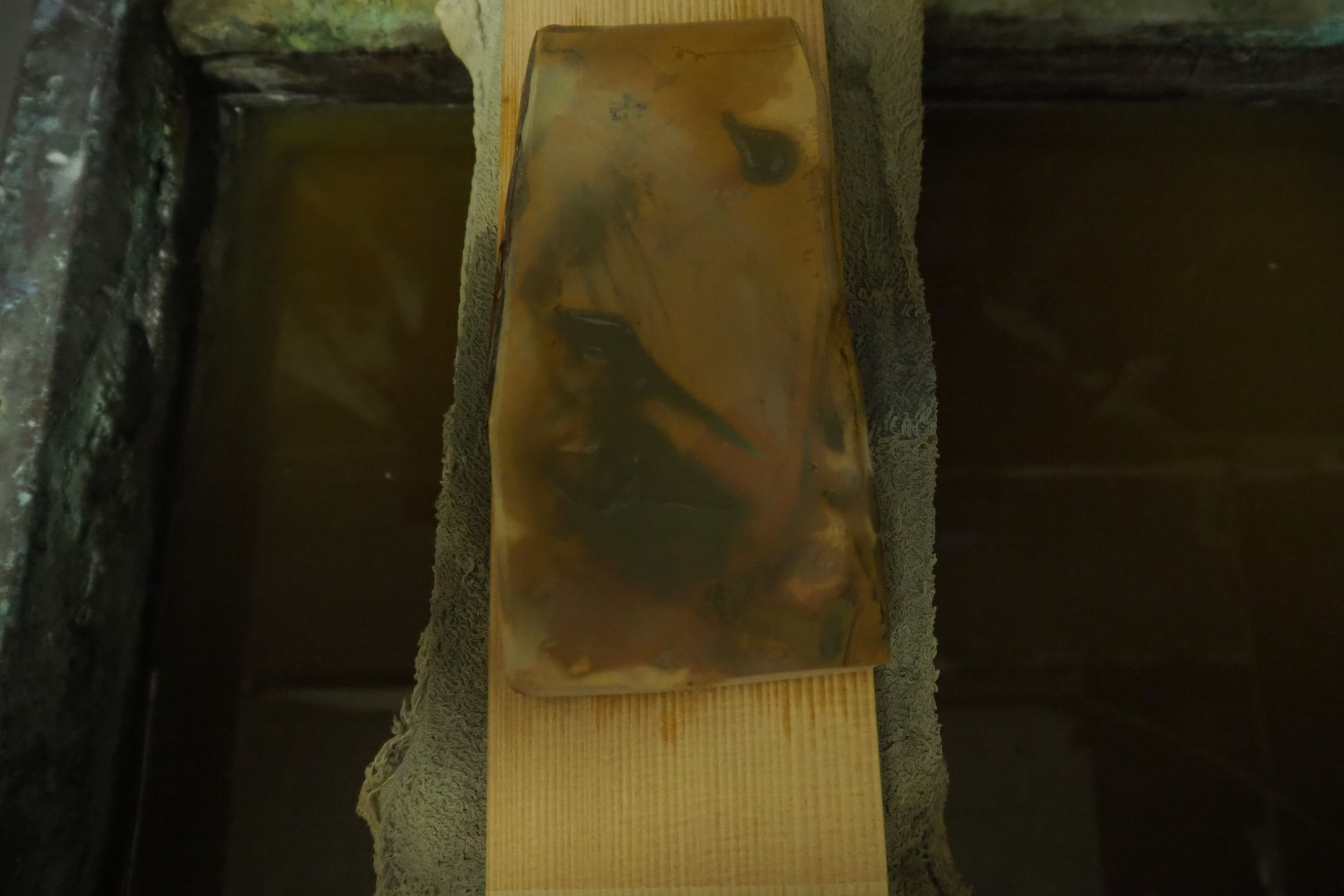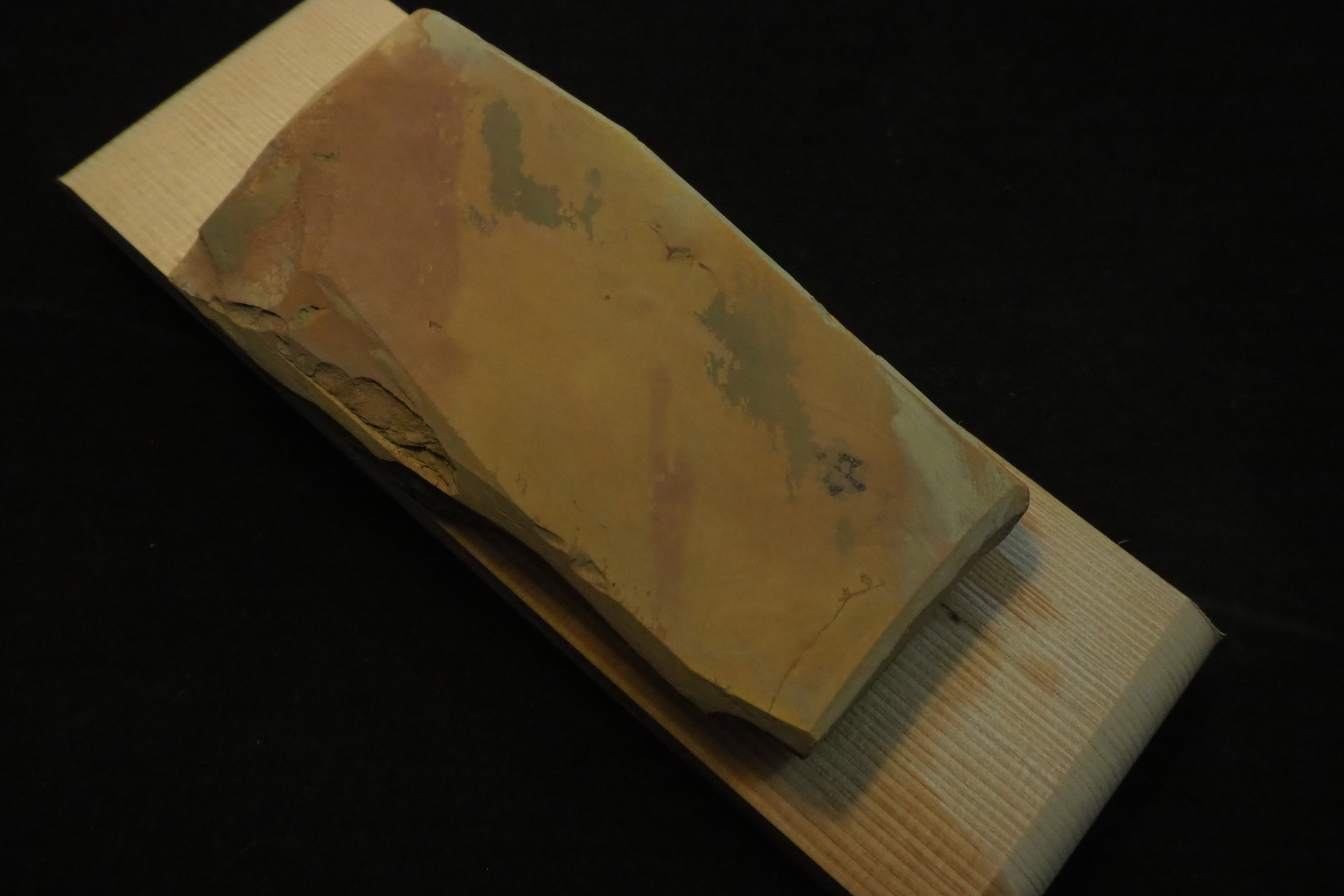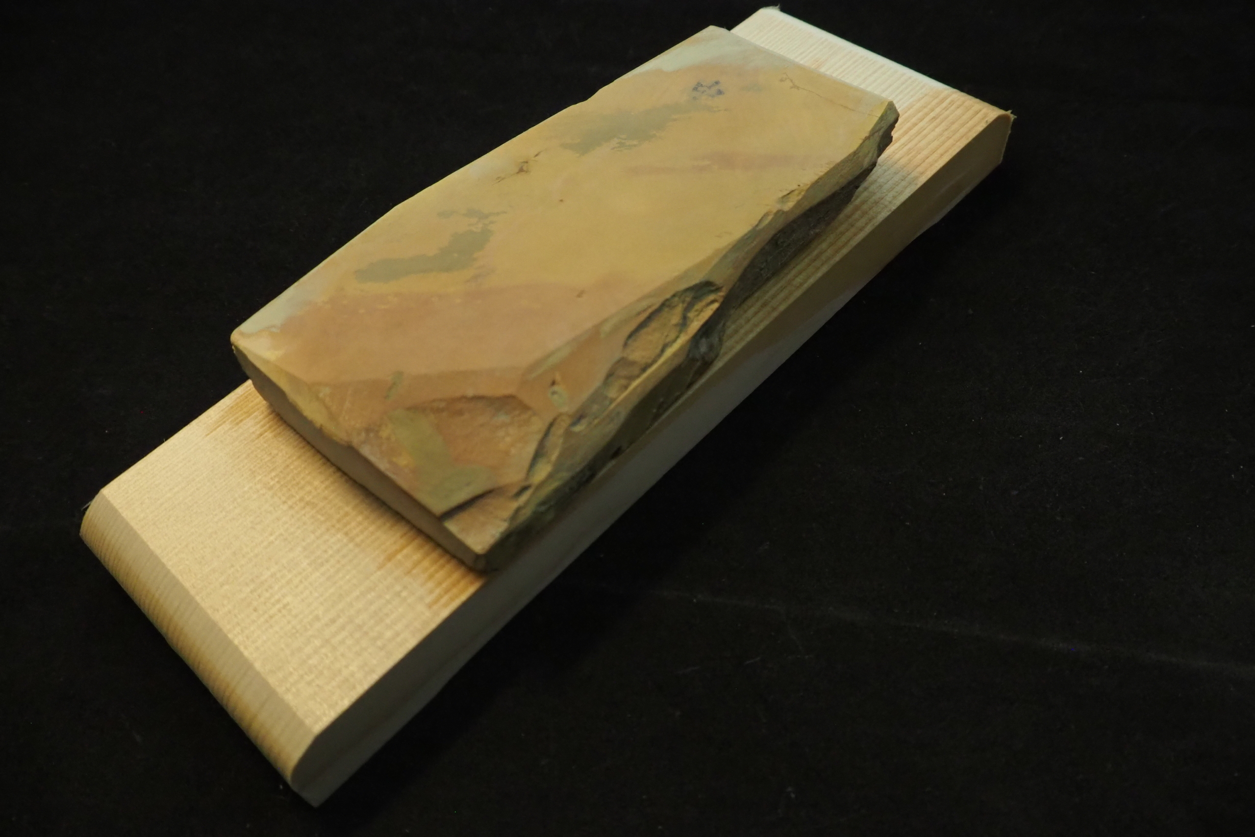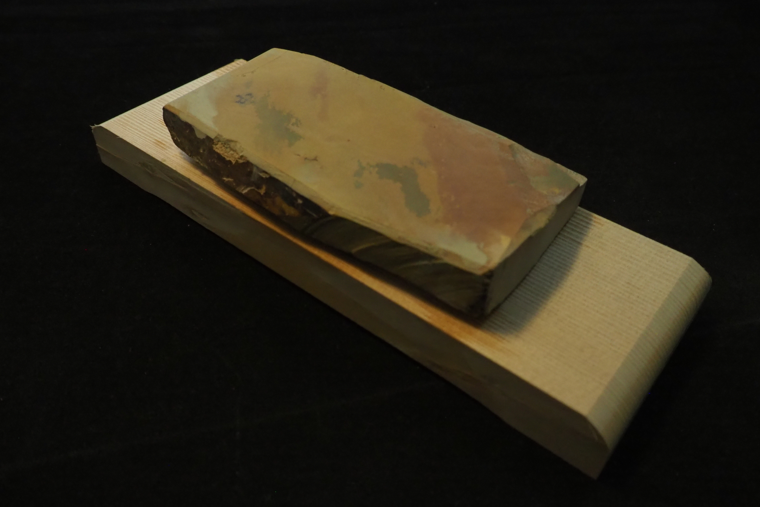 “This Nakayama finishing whetstone was part of a private collection and has been used for many years in blade sharpening tests. It is now being offered for sale after being replaced with a new stone. A high-quality finishing stone at a very reasonable price.